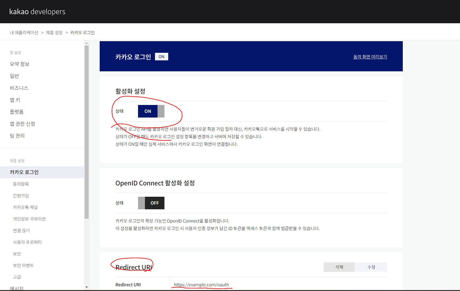 4. 카카오로그인 활성화 & redirect URL 설정하기