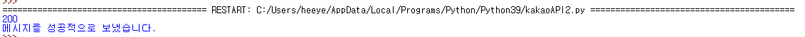 print('메시지를 성공적으로 보내지 못했습니다. 오류메시지 : ' + str(response.json()))